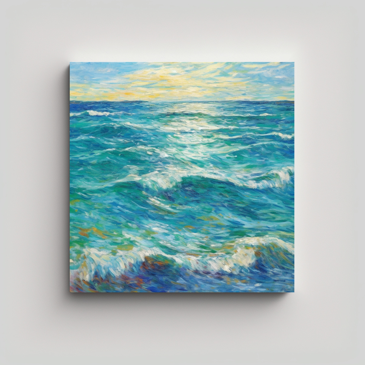 Pintura Abstracta Duradera: Mar Azul Brillante Bajo La Luz Solar