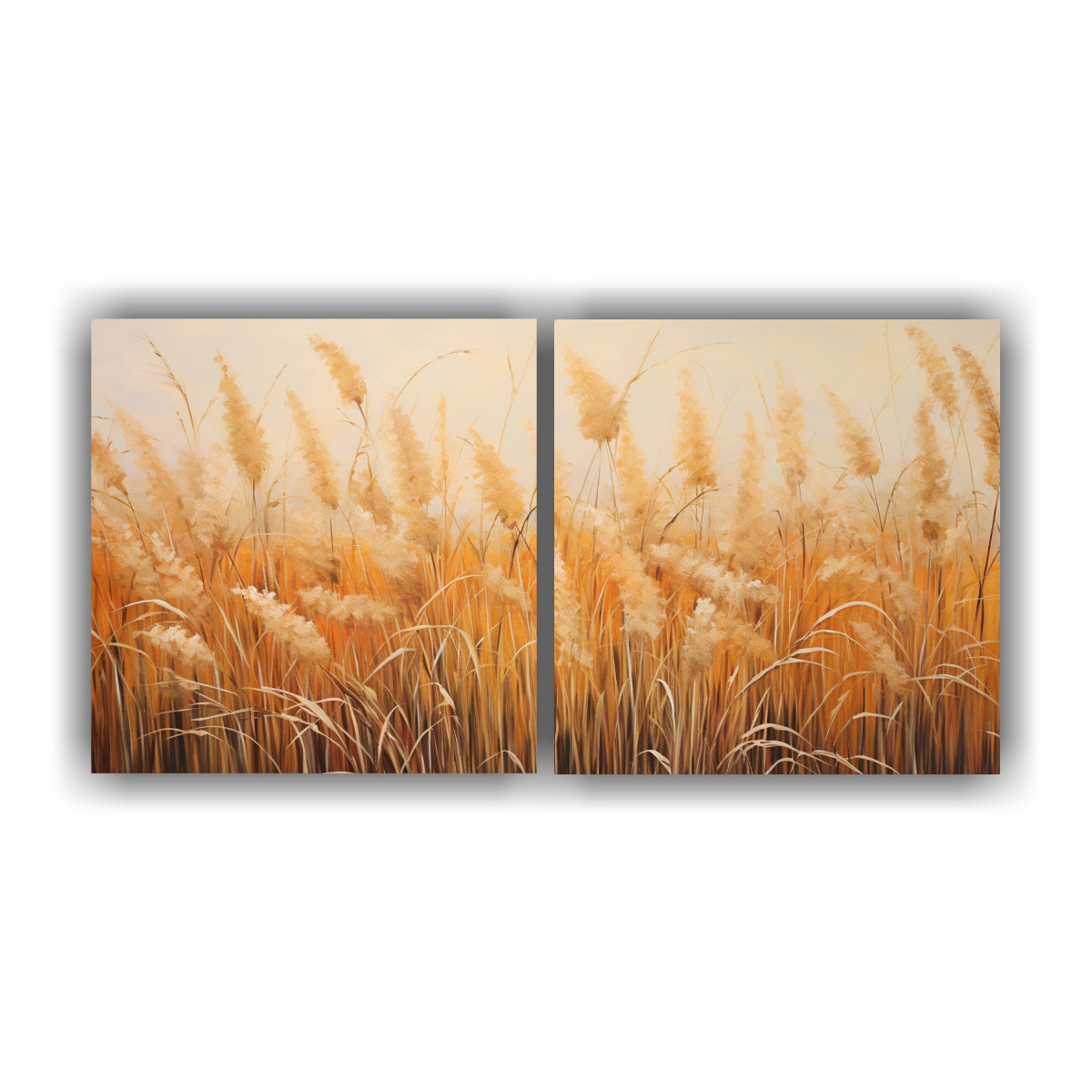 Pintura Abstracta Elegante De Dos Cuadros De Inspiración En Cañas De Juncos