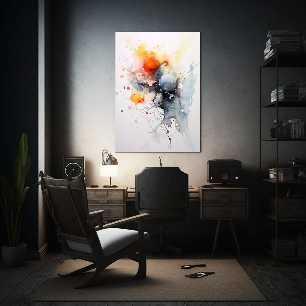 La pintura abstracta en acuarela es una forma elegante de decorar tus espacios Los colores beige, azul marino grisaceo, carmesí, coral, gris, amarillo claro, plateado y turquesa se combinan en este cuadro de alta calidad Encuentra diseños exclusivos en DecoCuadros y disfruta de precios económicos y entregas rápidas