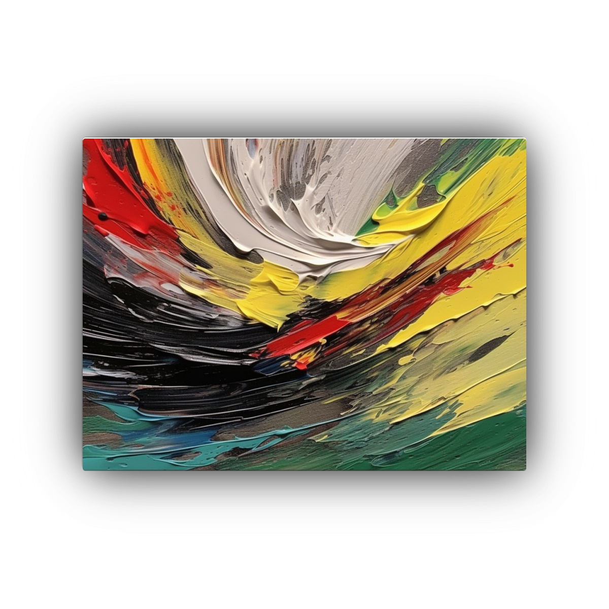 Pintura Abstracta Elegante En Negro, Verde, Amarillo Y Rojo