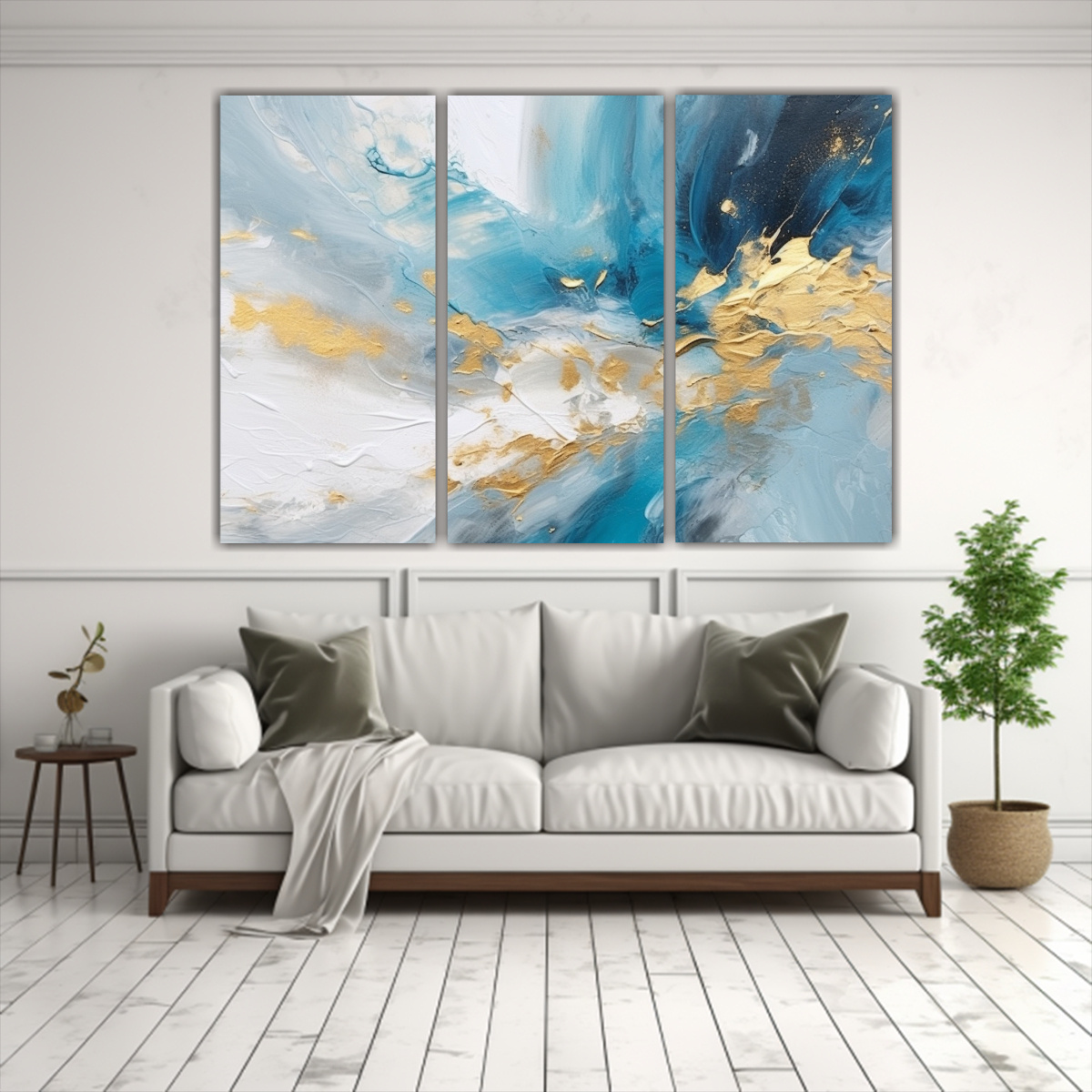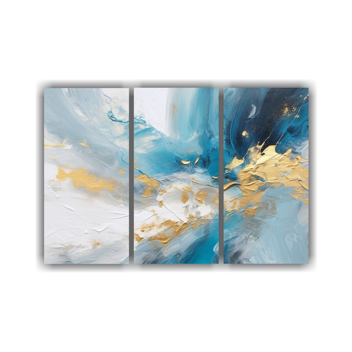 Este cuadro abstracto en azul, blanco y oro con finas líneas será ideal para decorar tu sala de estar o tu dormitorio, creando un punto focal sofisticado Combínalo con muebles en tonos neutros para resaltar su belleza