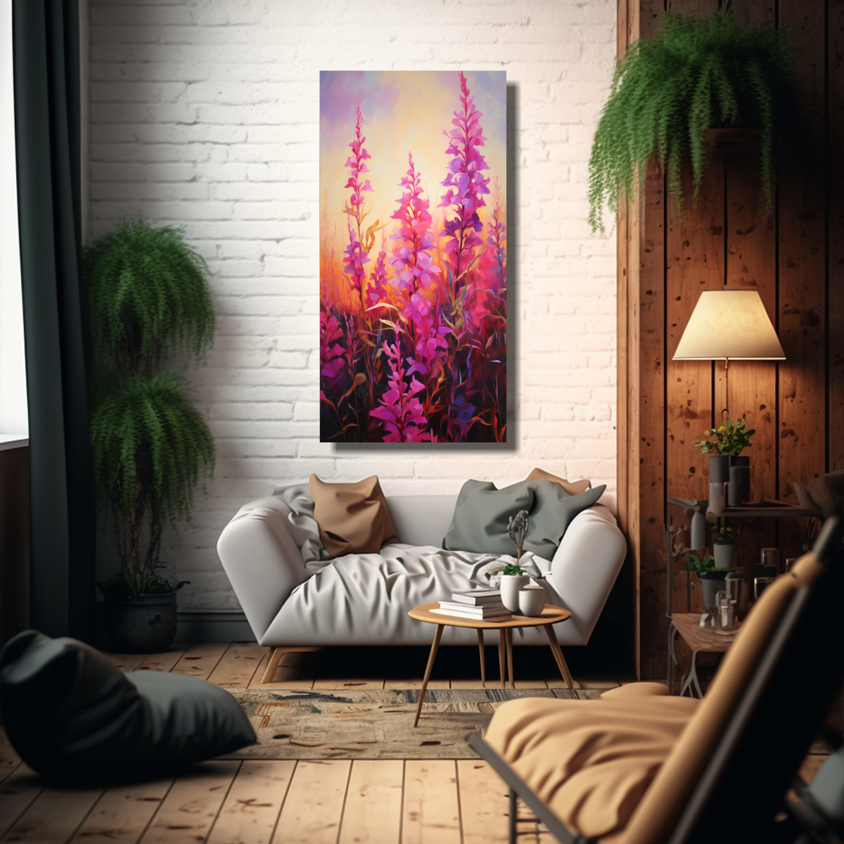 Este cuadro abstracto A Fireweed Herbs quedará espectacular en tu sala de estar Puedes colocarlo sobre un sofá blanco para crear un contraste impactante Además, puedes complementar la decoración con cojines en tonos carmesí, lila y plateado, y una alfombra gris para darle un toque de elegancia ¡Verás cómo este cuadro se convierte en el centro de atención de tu espacio!