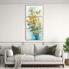 Pintura Abstracta En Bastidor: Árbol Naranja Amarillo Y Turquesa