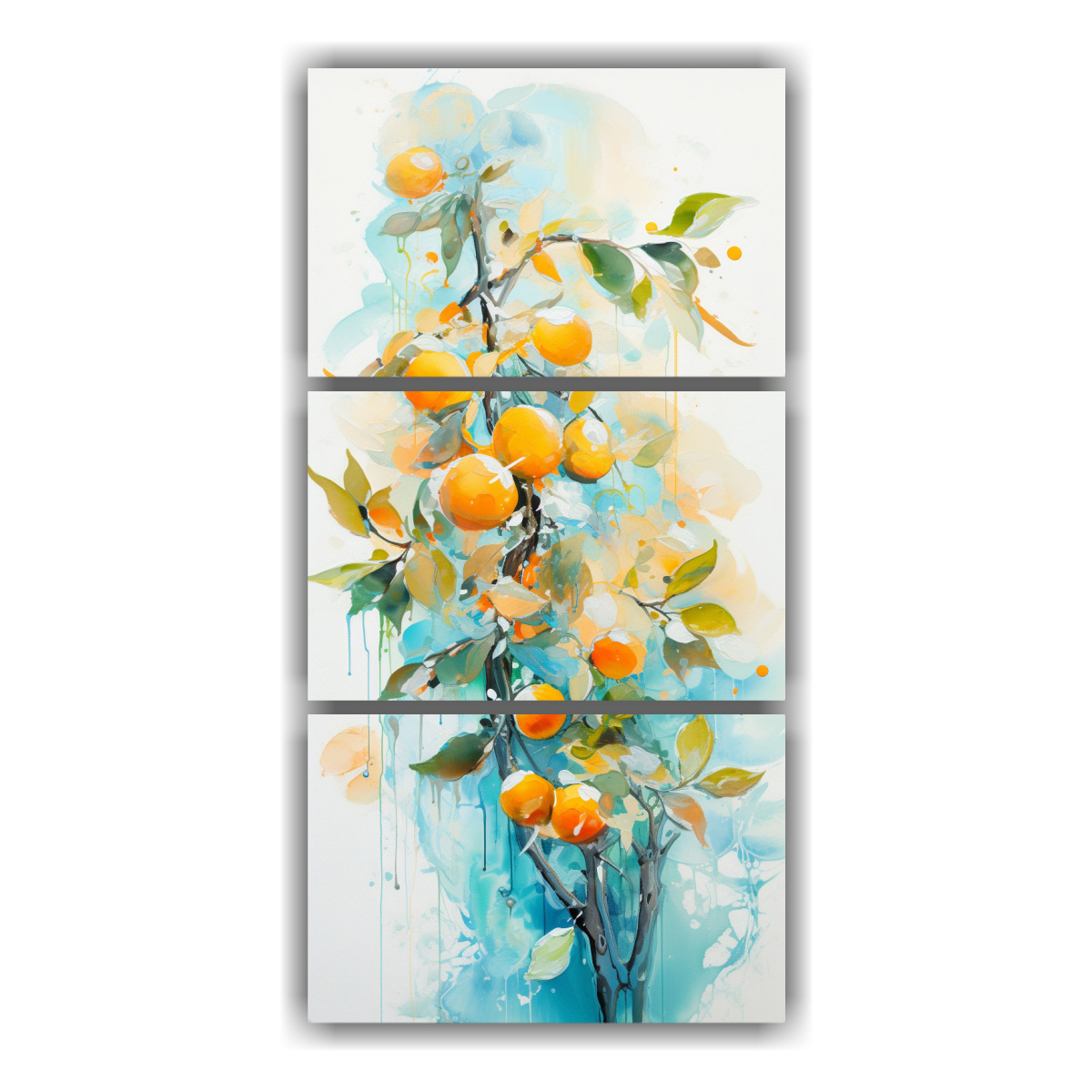 Renueva tu espacio con este vibrante cuadro inspirador de un árbol en tonos naranja, amarillo y turquesa Dale un toque de calma y sofisticación a tu hogar u oficina con esta pieza única