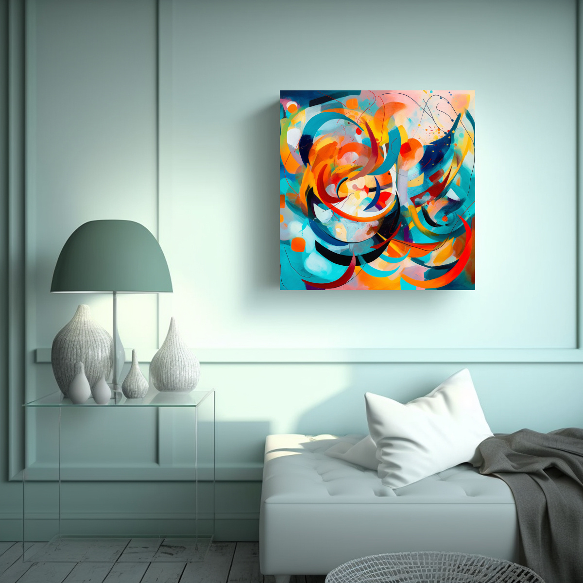 DecoCuadros tiene para ti la Pintura Abstracta en Bastidor de Diseño Hermoso con Colores Brillantes Verde Azulado, Carmesí, Plateado, Anaranjado, Coral, Cian, Turquesa, Negro, Menta, Lila Envíos express a regiones y entregas rápidas y gratuitas en Santiago