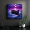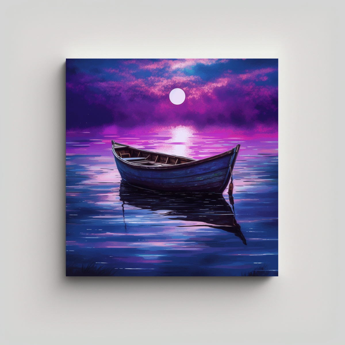 Pintura Abstracta En Bastidor De Madera: Barco Morado Flotando En El Agua