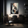 Este cuadro sería perfecto para decorar una sala de estar o un dormitorio, ya que sus tonos apagados y líneas suaves crean un ambiente relajante y acogedor Puedes colocarlo sobre un sofá o una cama para crear un punto focal en la habitación Combínalo con cojines en tonos plateados, grises y coral para completar la decoración