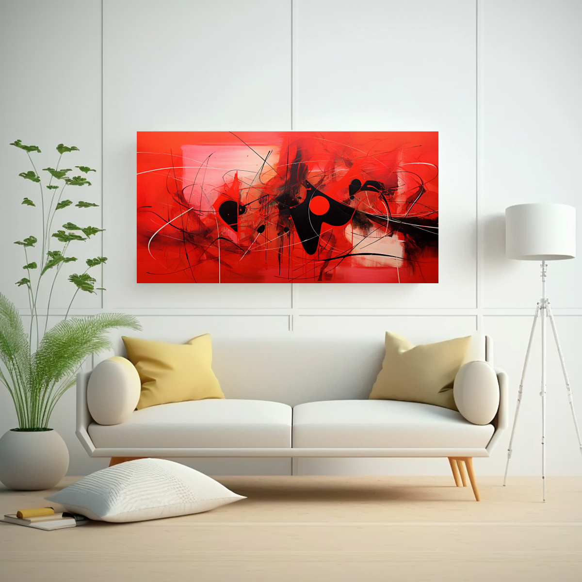El cuadro abstracto multicolor rojo es perfecto para colocar en la sala de estar, creando un ambiente moderno y elegante Combínalo con muebles en tonos neutros y complementa con cojines y cortinas en tonos rojos y dorados para lograr una armonía cromática