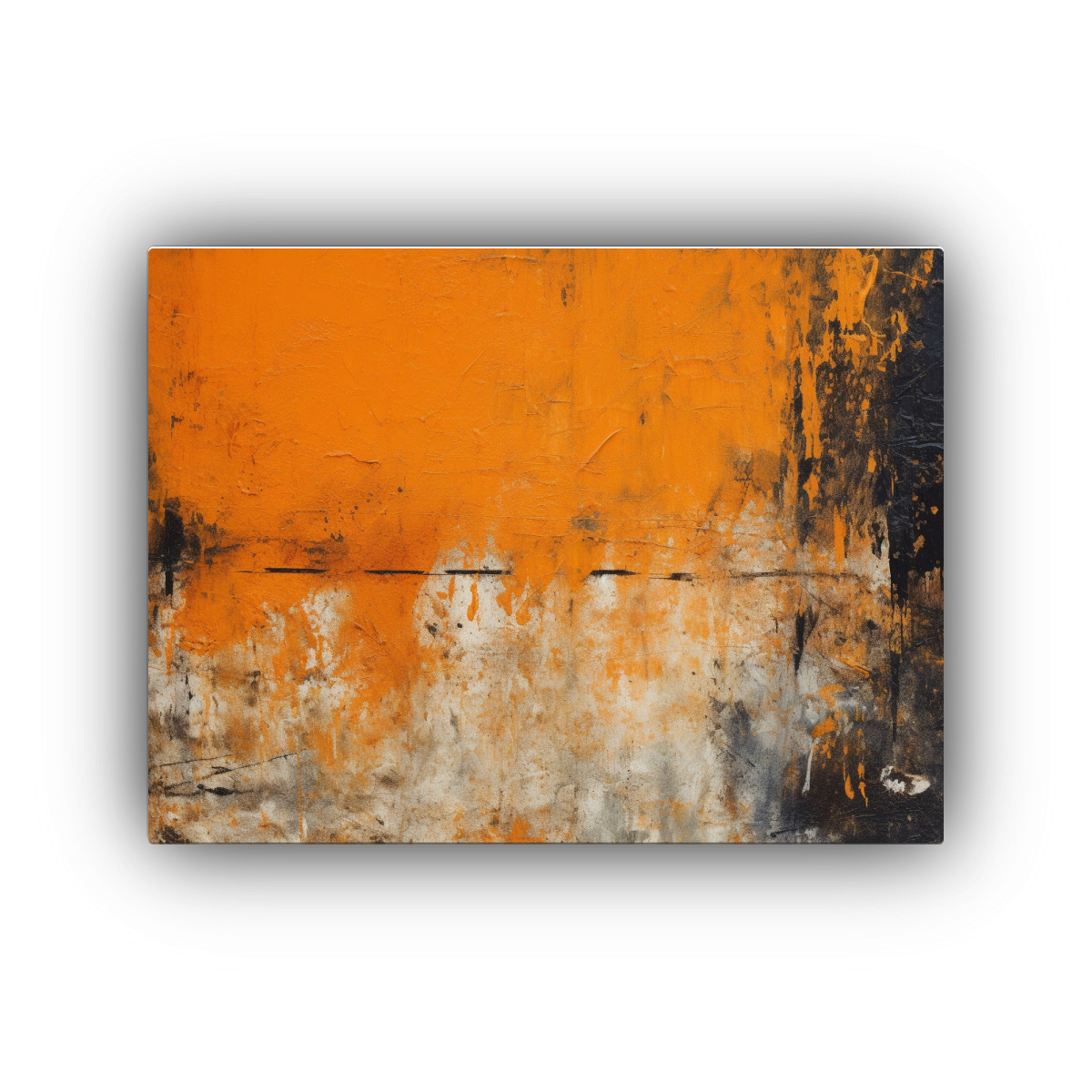 Pintura Abstracta En Bastidor Naranja Y Negro Con Fondo De Pared Desgastado