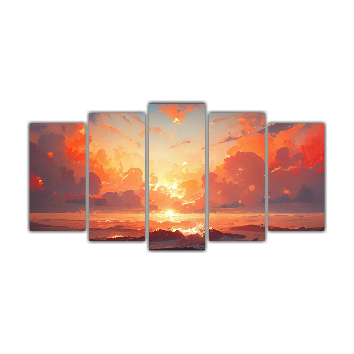 Este cuadro abstracto en bastidor con colores naranja del cielo y el mar es perfecto para colocar sobre un escritorio minimalista o una repisa de madera clara Combínalo con plantas verdes y elementos decorativos en tonos neutros para crear un ambiente relajado y armonioso en tu oficina