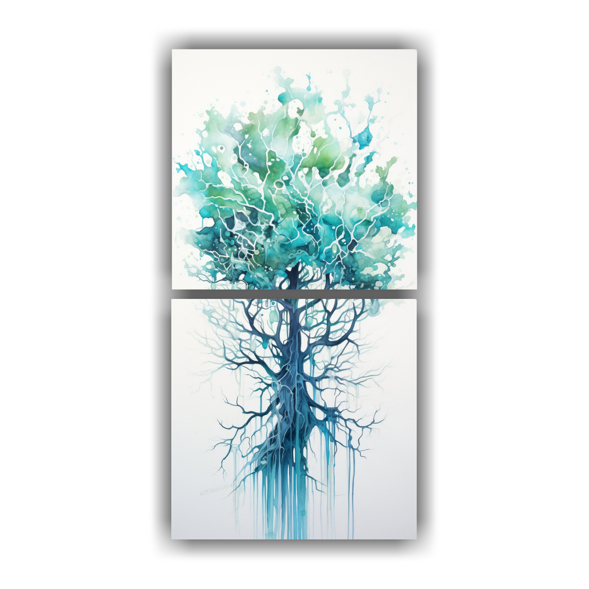 Pintura Abstracta En Colores Turquesa Y Azul De Un árbol De Mangle Dos Artes