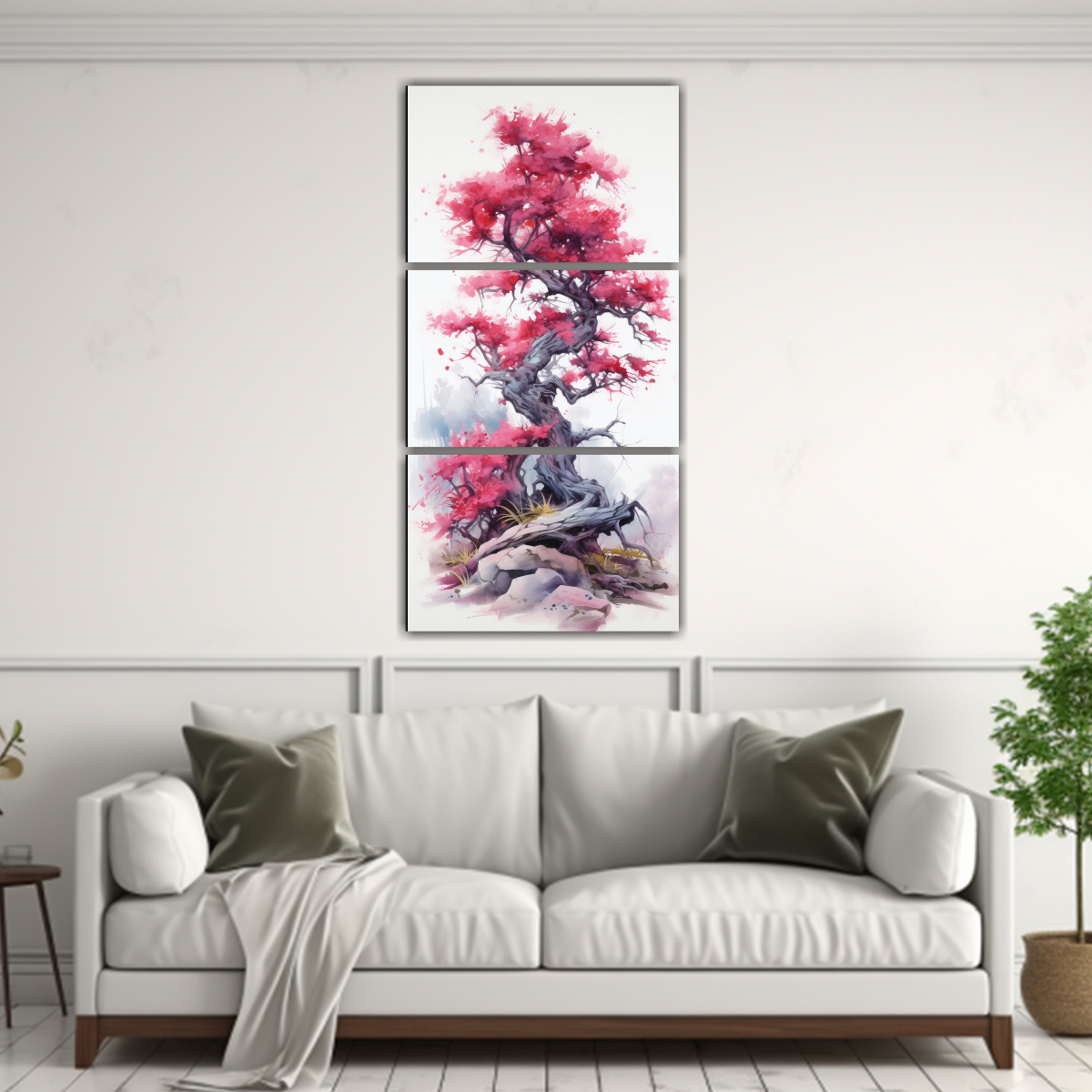 Este cuadro abstracto de colores vibrantes de un árbol de junípero rojo y rosa es ideal para decorar tu sala de estar Colócalo sobre un sofá beige para resaltar los tonos coral y plateado, creando un ambiente moderno y sofisticado
