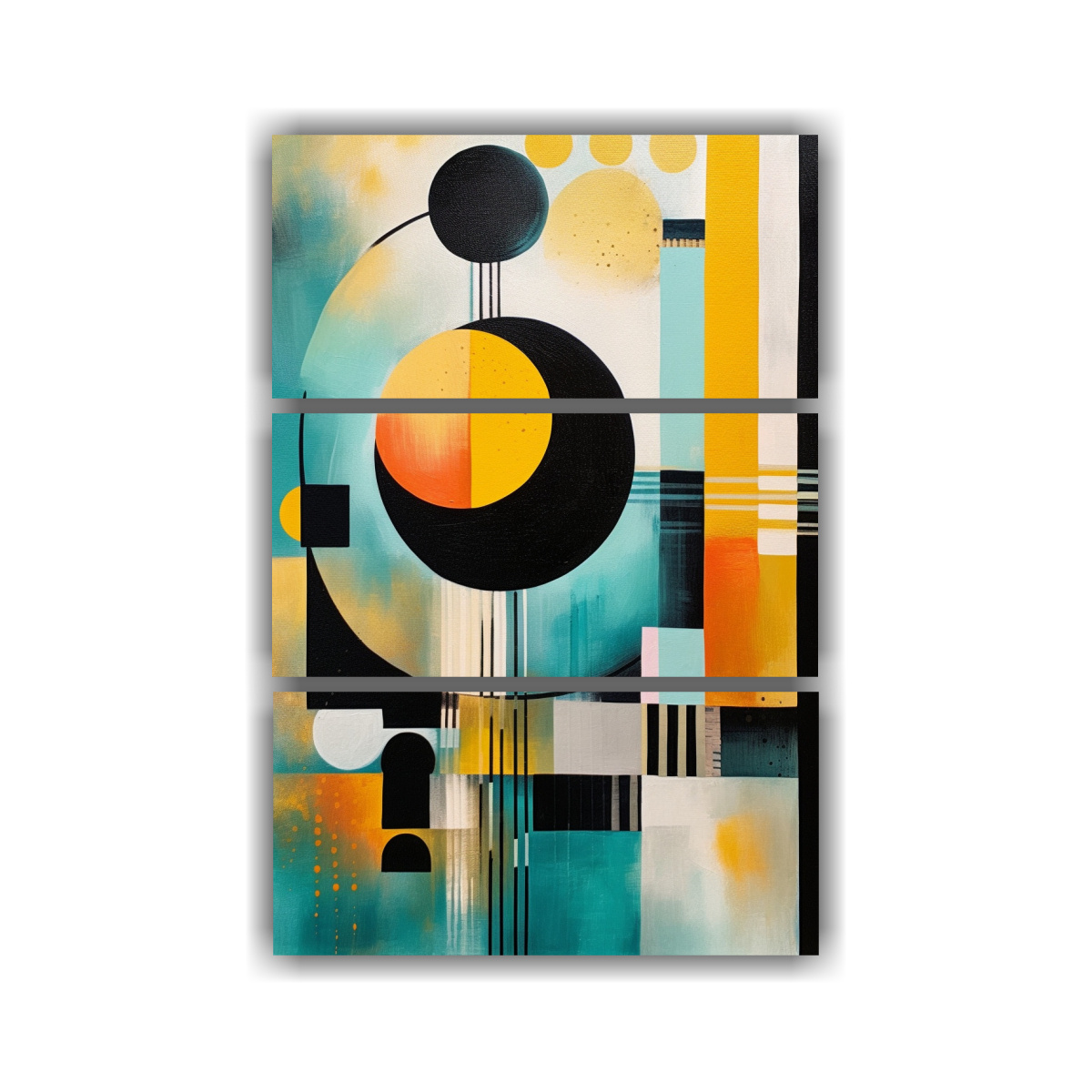 Este cuadro abstracto en estilo de fotocopiado solar con decoración de tres cuadros sería perfecto para colocar en tu sala de estar, sobre un sofá de color neutro Sus colores vibrantes como el turquesa, el coral y el menta le darán vida y estilo a tu espacio ¡Combínalo con cojines en tonos similares para lograr una armonía perfecta!