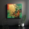 Pintura Abstracta En Lienzo Acrílico Verde Y Rojo Para Decoración.