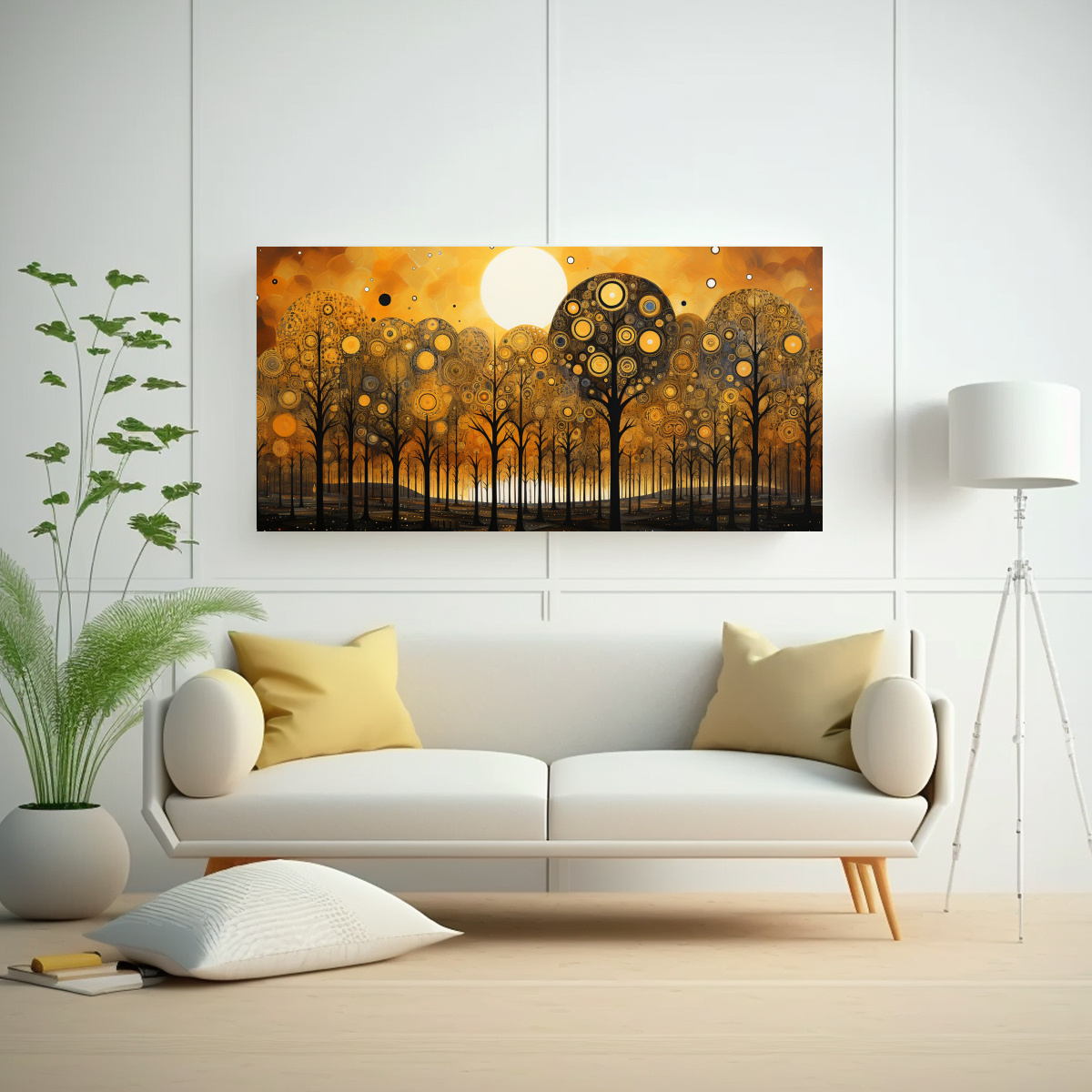 Este cuadro con efecto visual detallado y rico sería perfecto para decorar tu sala de estar Combínalo con muebles en tonos neutros y accesorios en colores que resalten, como cojines amarillos o plateados ¡Le dará un toque moderno y sofisticado a tu espacio!