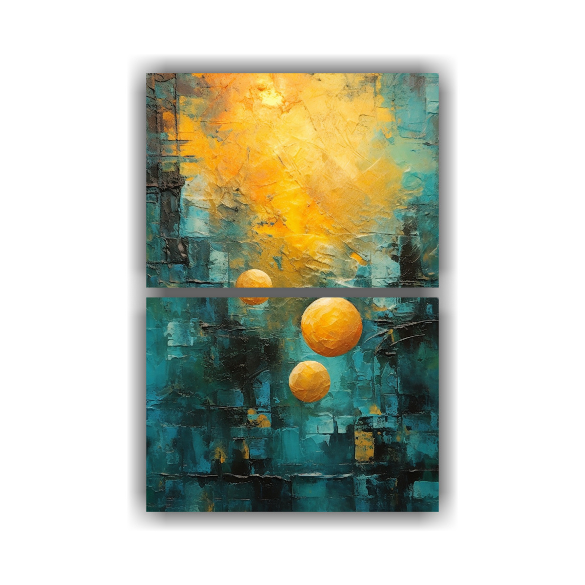 Recomendamos colocar este cuadro abstracto en un ambiente minimalista, donde sus colores enigmáticos se destaquen y aporten un toque de elegancia Puede ser el punto focal en una sala de estar o en un estudio, combinando con muebles de líneas rectas y colores neutros para crear un ambiente sofisticado y moderno