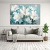 Pintura Abstracta En Lienzo De Flores En Blanco Y Verde Para Decoración