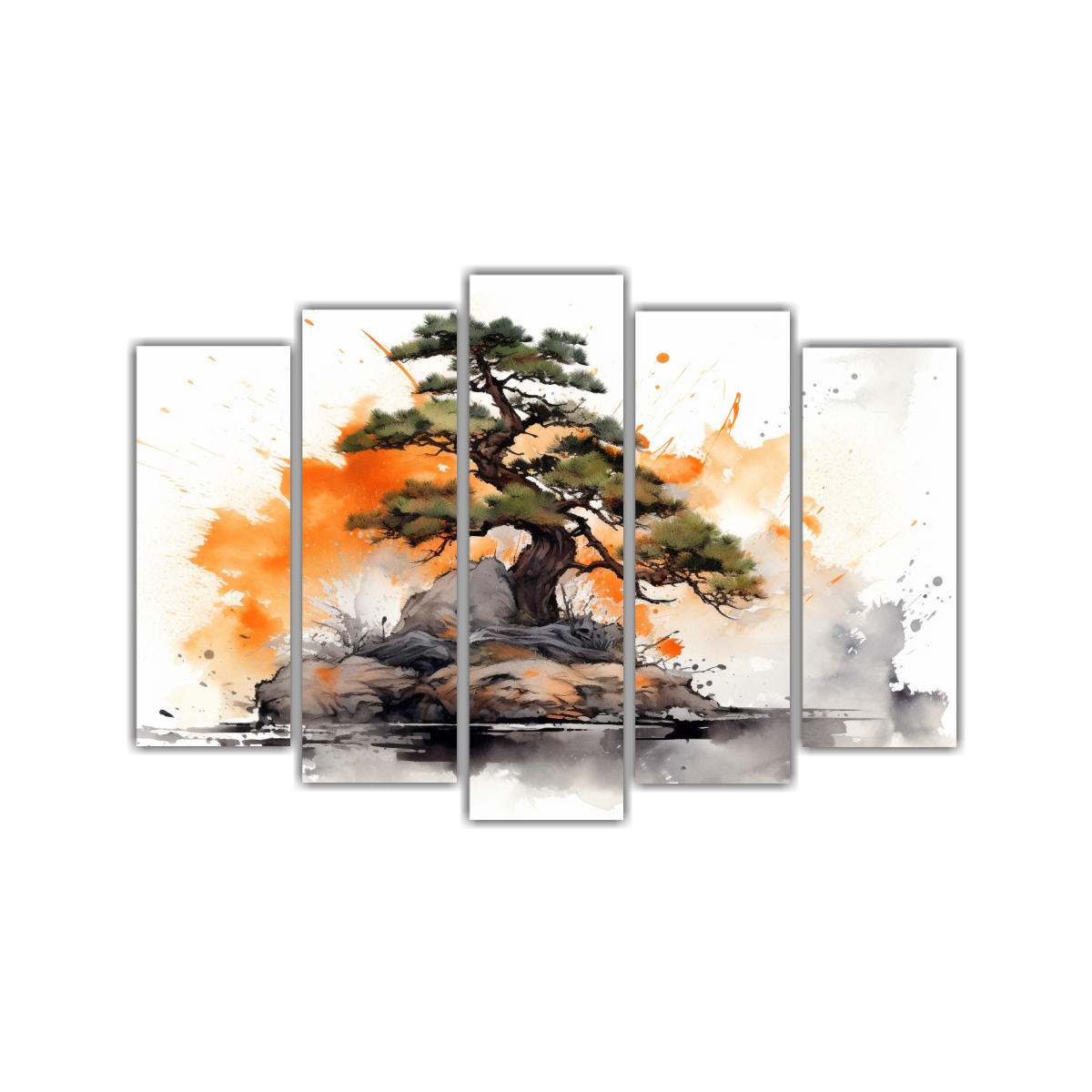 Pintura Abstracta En Lienzo De Hermoso Reflejo De árbol Bonsái En Naranja Y Negro