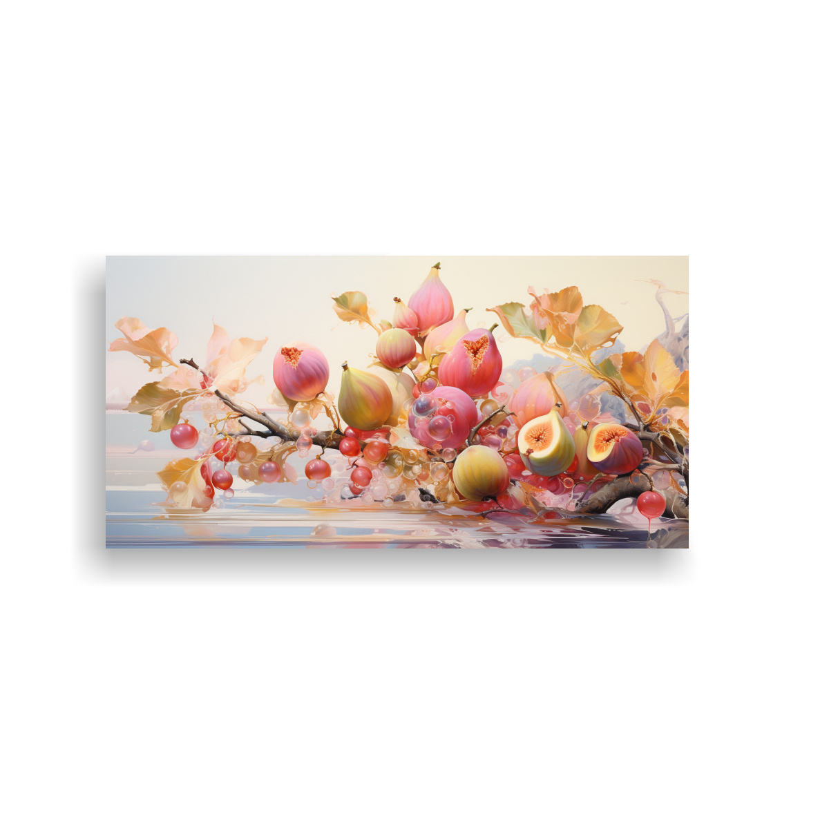 Pintura Abstracta En Lienzo De Tela, Inspiración En árbol De Higo, Colores Oro Y Rosa