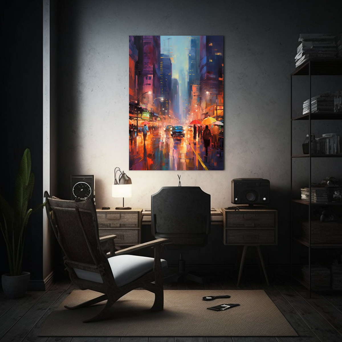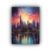 Pintura Abstracta En Lienzo De Una Ciudad De Noche