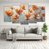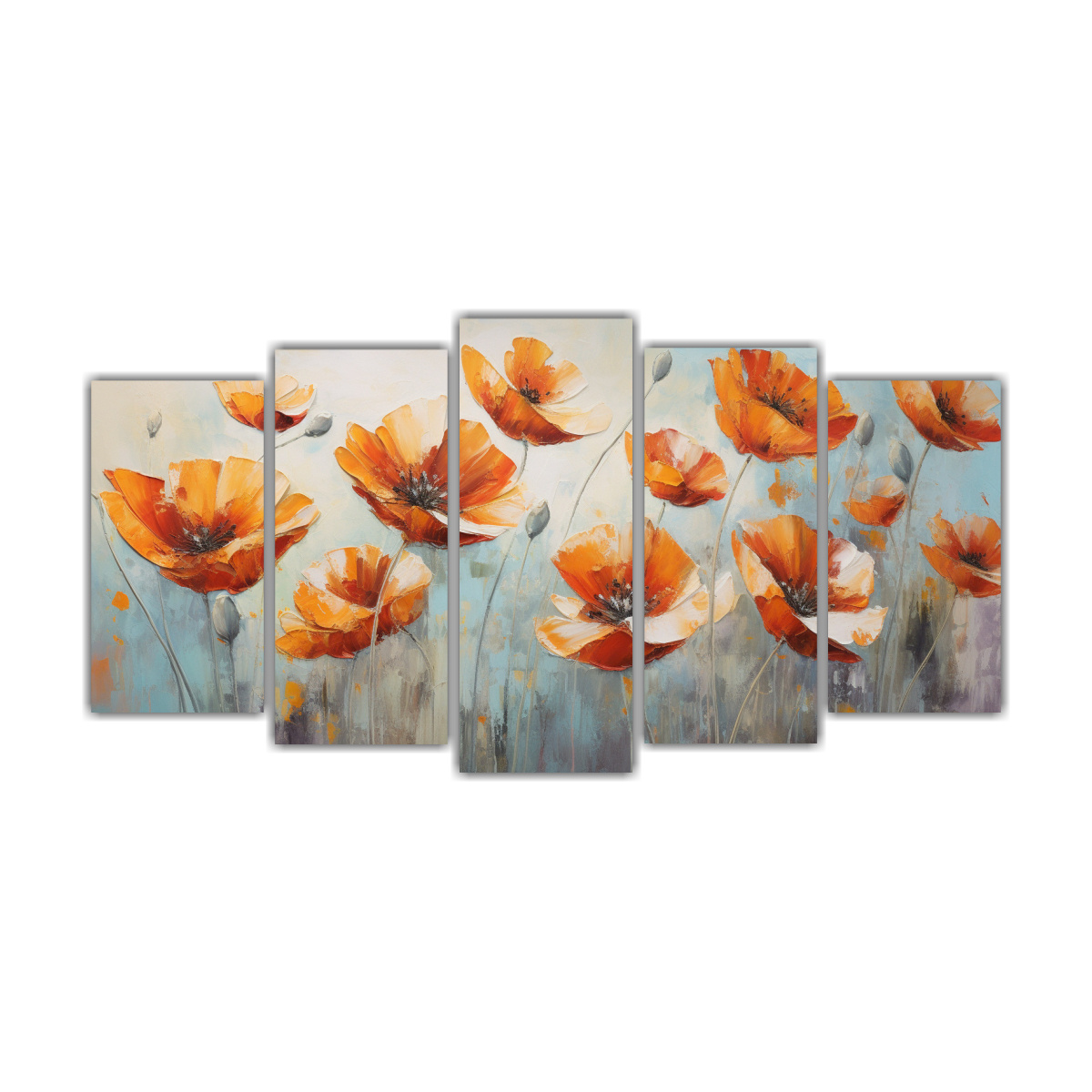Pintura Abstracta En Lienzo Estilo De Amapolas Naranjas Estética Cinco Canvas.