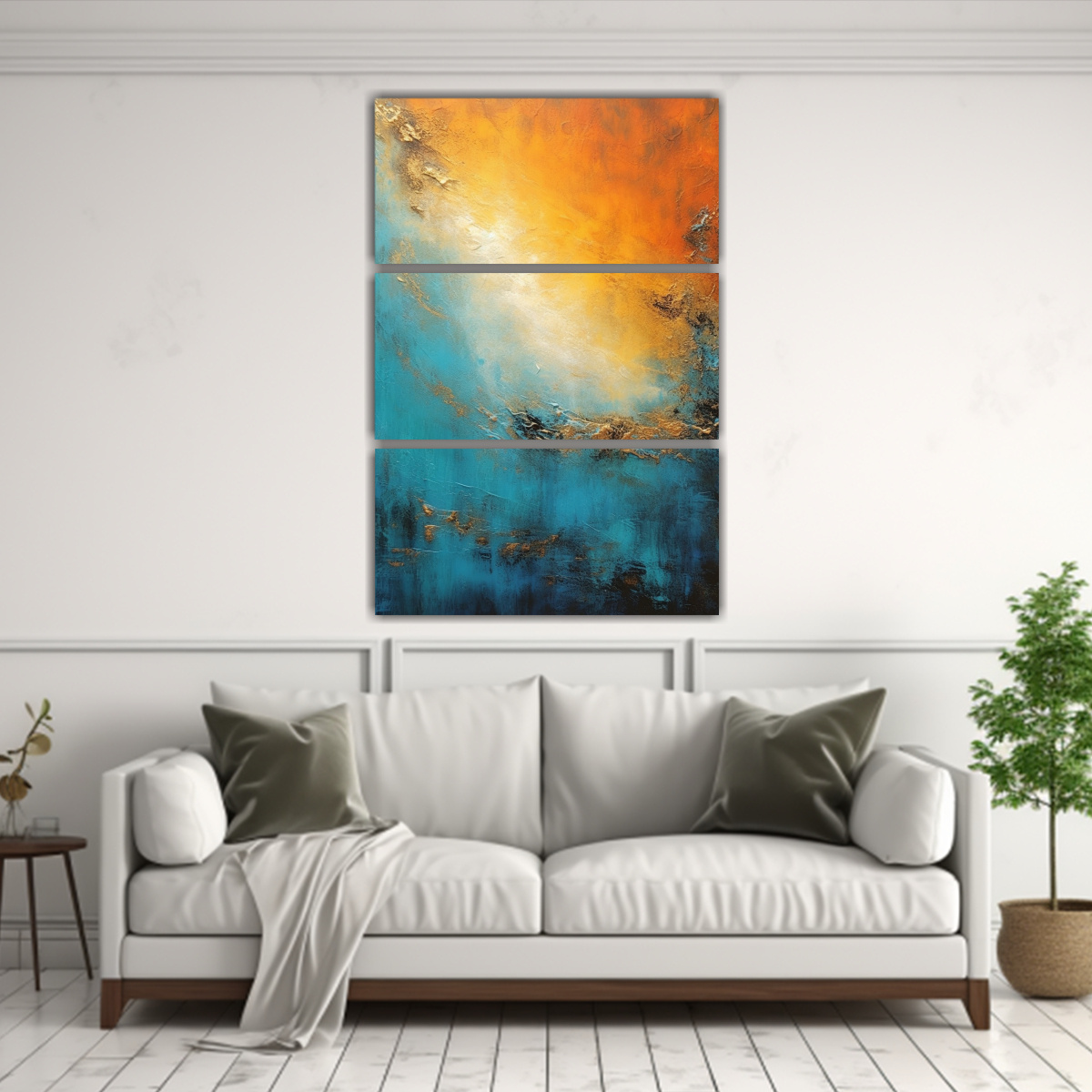 Este cuadro de pintura abstracta en lienzo sería perfecto para decorar tu sala de estar Colócalo en una pared prominente y combínalo con muebles en tonos neutros como blanco o gris para resaltar los colores vibrantes del cuadro Puedes agregar cojines en tonos similares a los colores del cuadro para lograr una armonía en la decoración ¡Agrega un toque de arte y estilo a tu hogar con este hermoso cuadro de DecoCuadros!