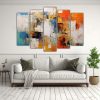 Pintura Abstracta En Naranja, Verde, Blanco Y Azul Para Decoración.