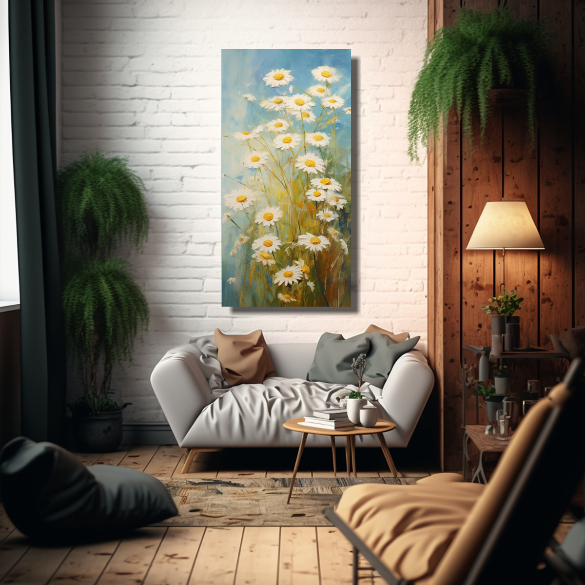 DecoCuadros presenta el cuadro Lienzo Moderno floral A Chamomile Herbs abstract painting high detailed oil sty con una representación en estilo Estilo óleo de hierbas de manzanilla Este cuadro, con los colores Gris, Azul Marino grisaceo, Plateado, Beige, Chocolate y Turquesa, es una opción perfecta para añadir un toque moderno y detallado a tu espacio Nuestros cuadros decorativos impresos en tela de alta calidad con bastidores de madera son diseño exclusivo de nuestra tienda Disfruta de la mejor calidad y los precios más económicos del mercado Realizamos entregas rápidas y gratuitas en Santiago, y envíos a regiones express