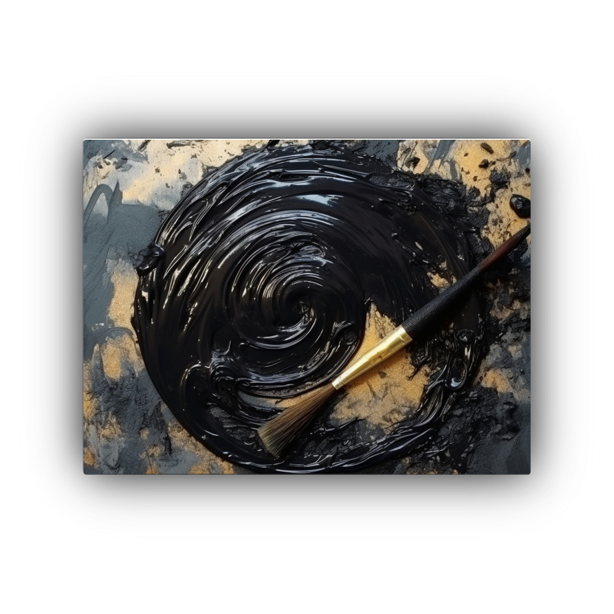 Pintura Abstracta En Pared: Pincelada Negra, Vista Superior