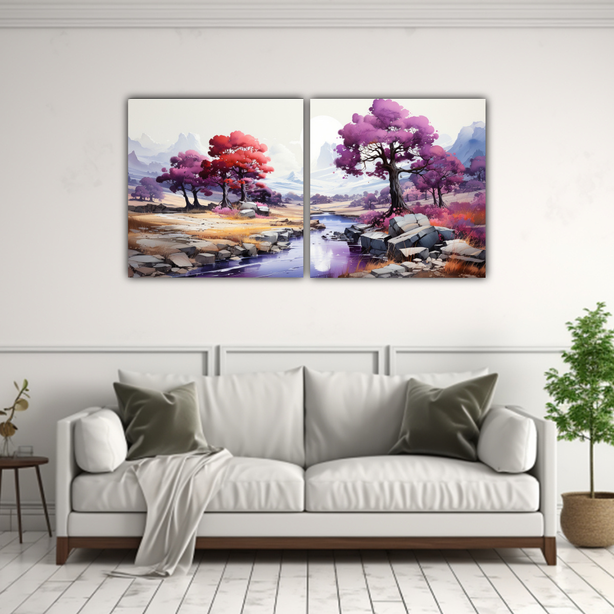 Renueva tu decoración con el set de 2 cuadros abstractos en morado y azul Resalta la modernidad y elegancia de tu espacio con estos tonos vibrantes Calidad premium a precios competitivos ¡Hazte con ellos ya!
