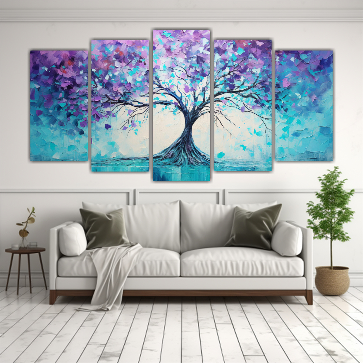 Expresividad A Banyan Tree con tonos morado y turquesa en una pintura abstracta que brinda exclusividad a tu hogar Envíos rápidos y gratuitos en Santiago