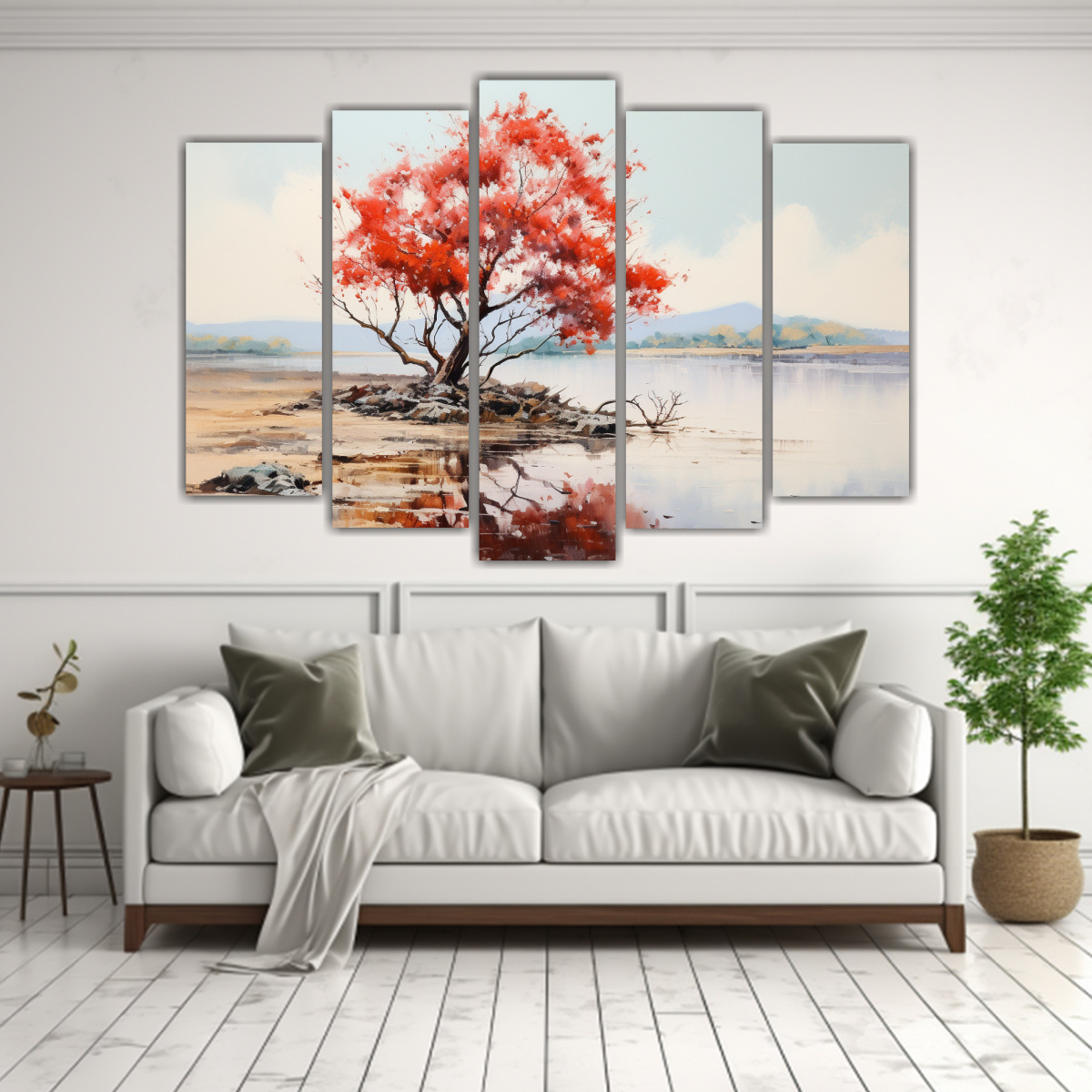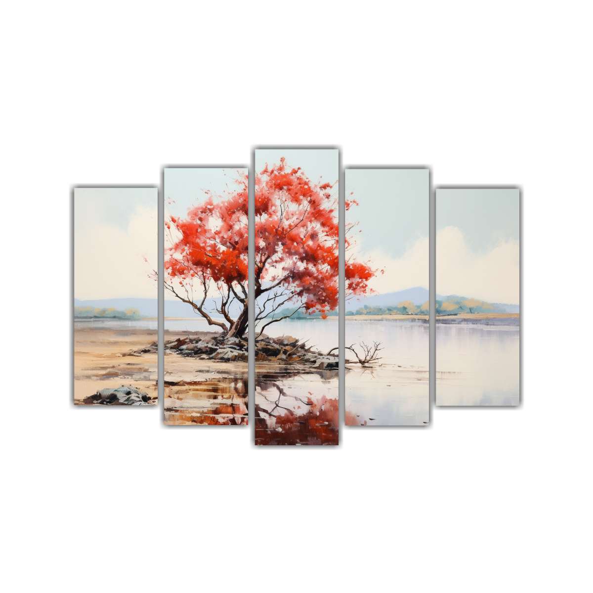 Pintura Abstracta En Tonos Rojo Y Dorado De Un árbol De Mangle: Decoración.