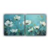 Pintura Abstracta En Tonos Turquesa Y Azul De Un árbol Tropical: Dos Cuadros De Naturaleza Viva