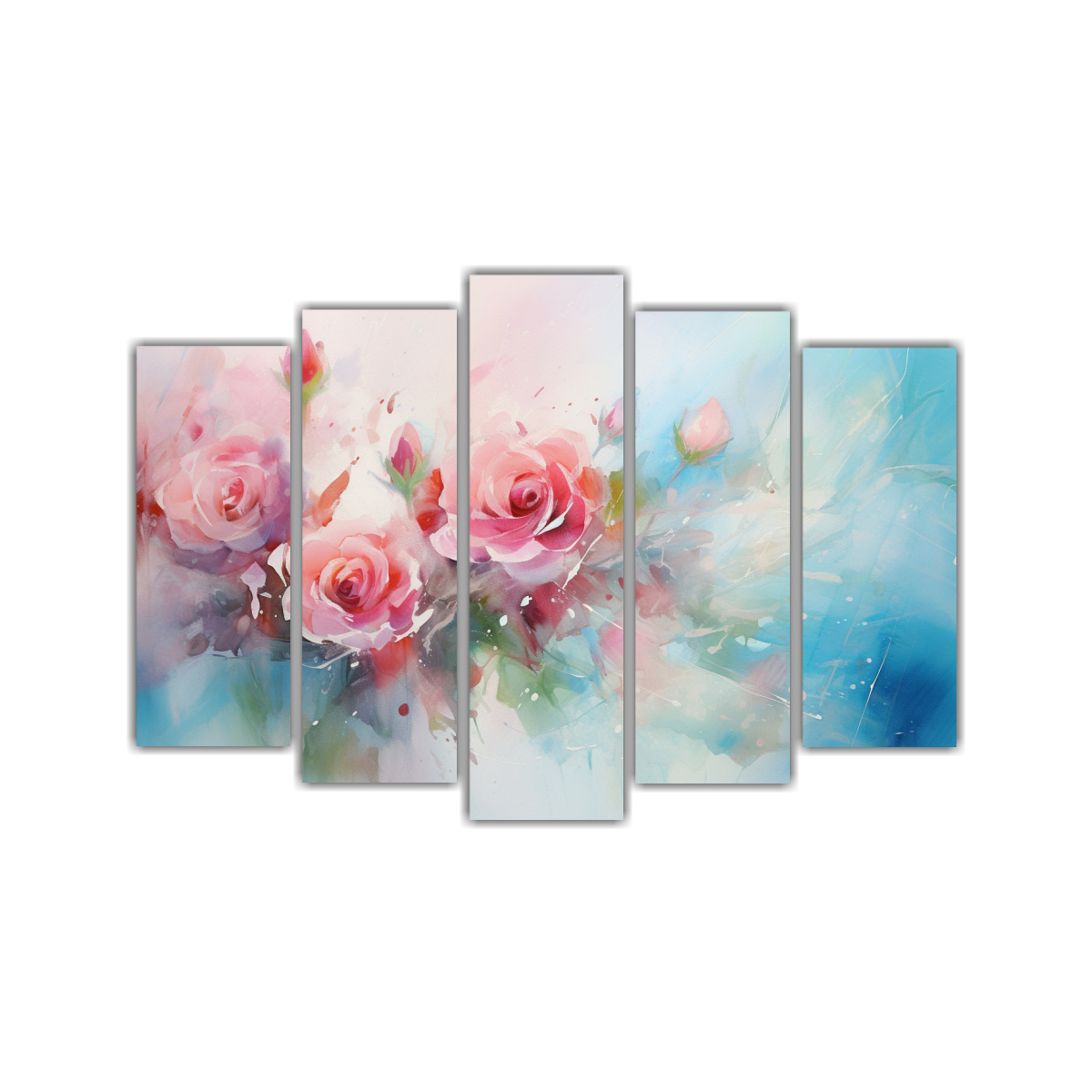 Pintura Abstracta En Tonos Turquesa Y Rosa Para Decoración.