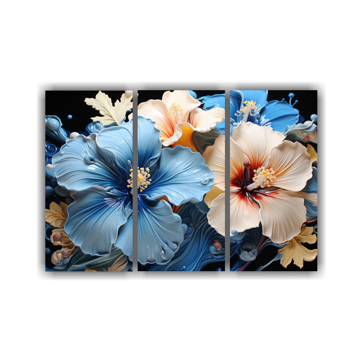 Pintura Abstracta Espectacular De Hibiscos En Negro Y Azul