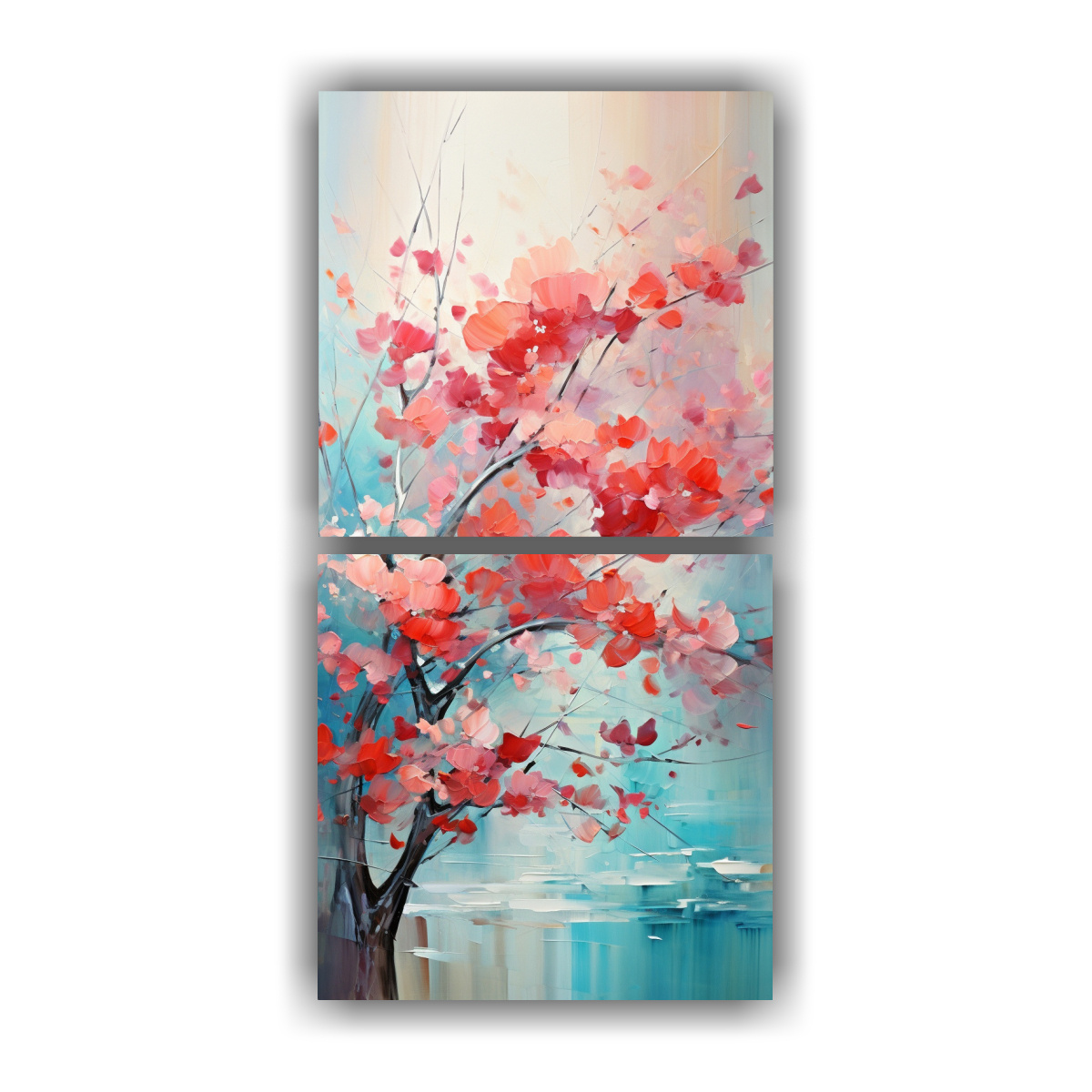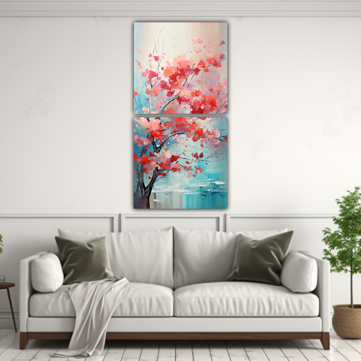 DecoCuadros te presenta una hermosa pintura abstracta de un árbol de álamo en colores rojo y turquesa Nuestros cuadros decorativos son ideales para agregar un toque de sofisticación a tu hogar u oficina Con entrega rápida y gratuita en Santiago y envíos express a regiones, no esperes más para tener el tuyo