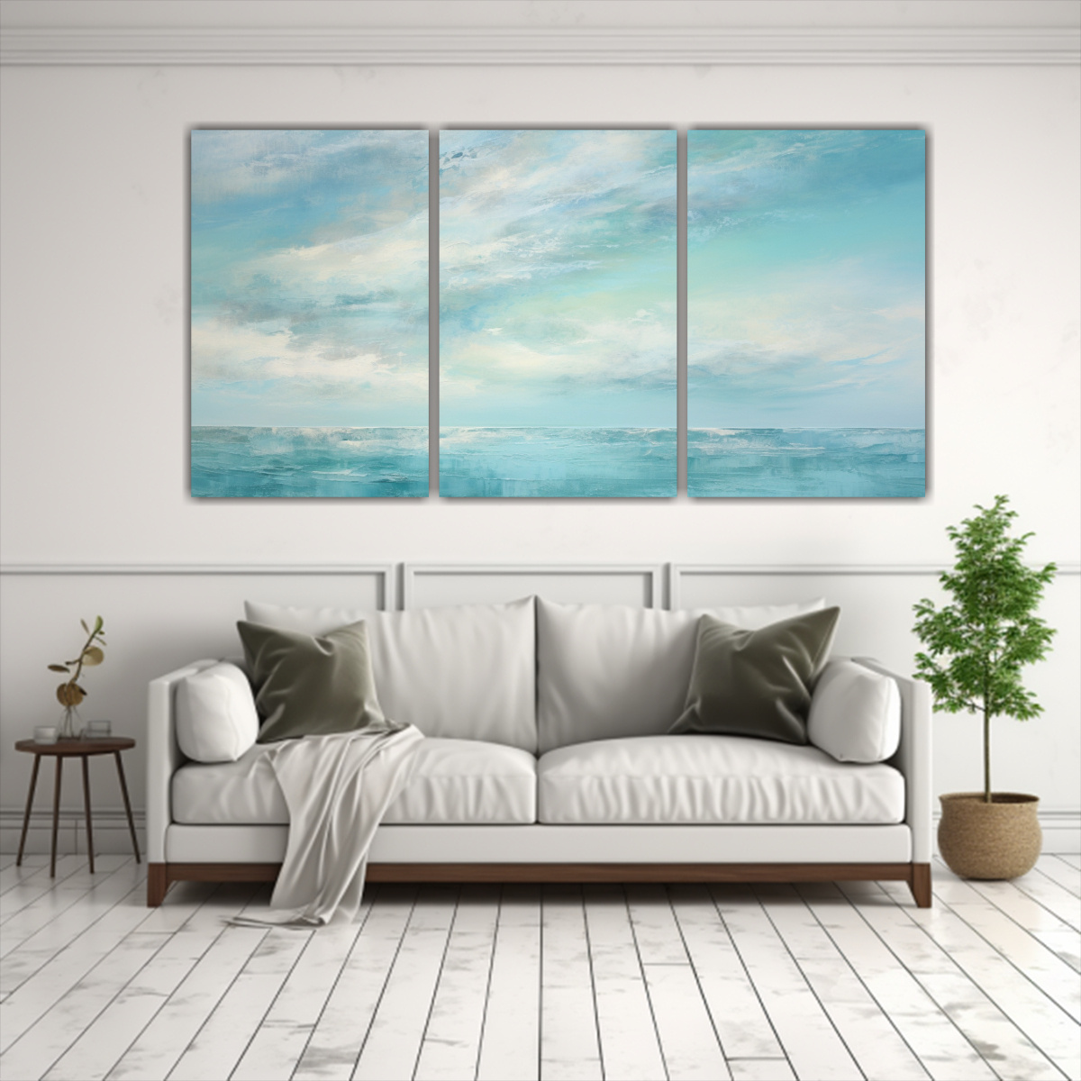 Para realzar la belleza de este cuadro, te recomendamos colocarlo en una pared blanca para resaltar sus tonos turquesas y plateados Combínalo con muebles en tonos neutros y detalles en mint y beige para lograr un ambiente armonioso y sofisticado