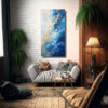 Coloca nuestra pintura abstracta estilo azul blanco en el salón de tu hogar para darle un toque moderno y elegante Combínala con muebles en tonos neutros como grises o blancos para resaltar su belleza