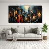 Este cuadro Pintura Abstracta Estilo Dali Jazz en Bastidor con Estrellas se vería espectacular en una sala de estar moderna Colócalo sobre un sofá en tonos neutros para resaltar su belleza y combínalo con cojines en colores que se encuentren presentes en la pintura, como el turquesa o el dorado Además, puedes agregar algunos objetos decorativos en forma de estrellas para reforzar el tema estrellado ¡Crea un ambiente único y sofisticado con este cuadro de DecoCuadros!
