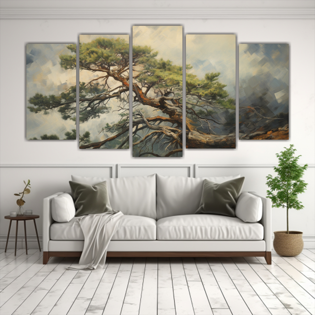 Pintura Abstracta Estilo Galardonada De Un Pino Escocés De Cinco Artes, Alto Detalle En óleo.