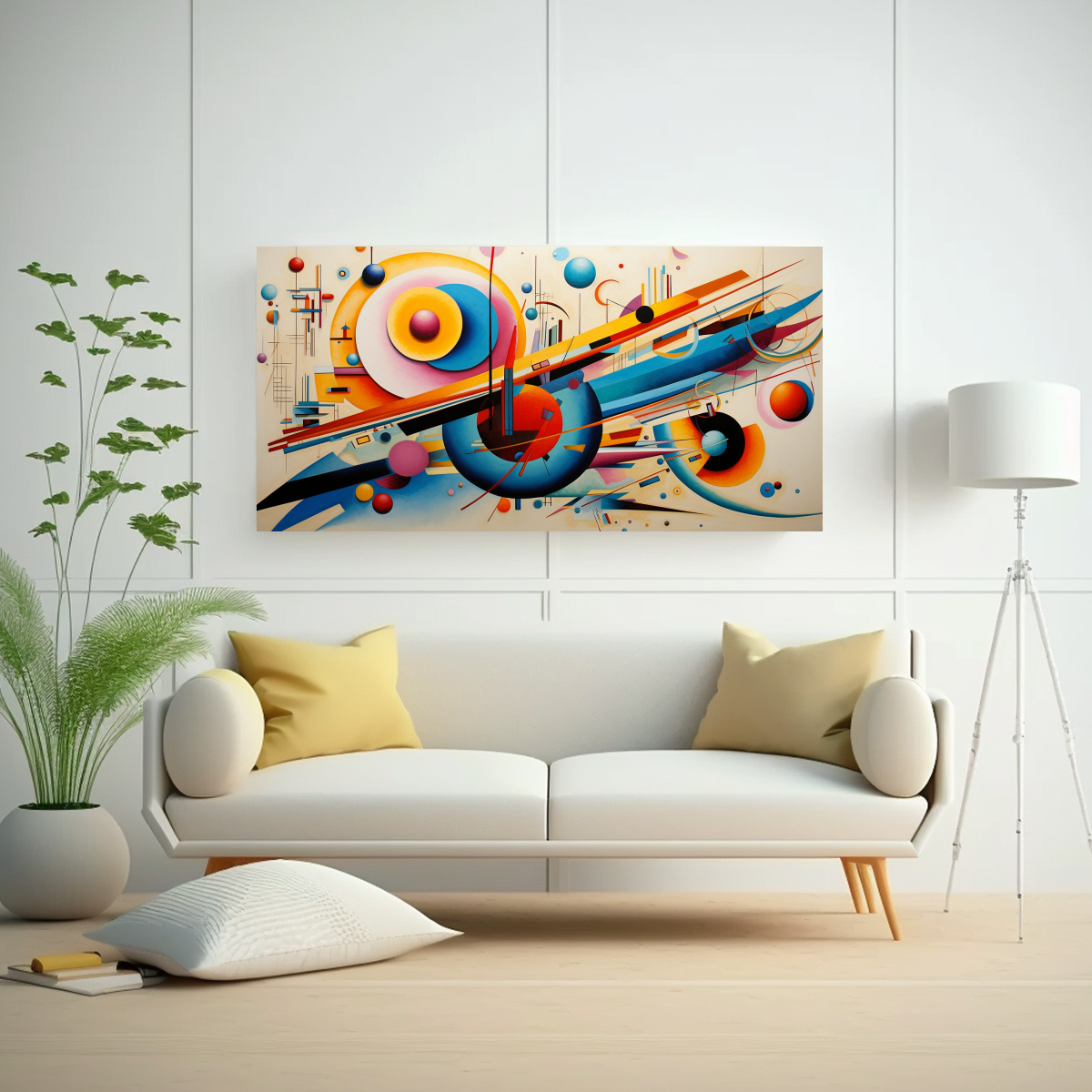 Agrega un toque de modernidad con esta obra que combina colores vibrantes y formas geométricas Ideal para salas de estar, dormitorios o espacios de trabajo Envío gratis en Santiago y entregas rápidas a nivel nacional