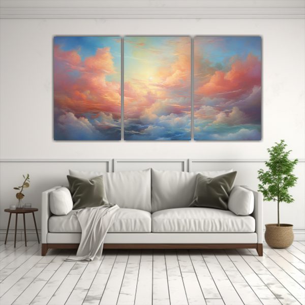 Para realzar la elegancia de tu sala de estar, coloca este set de 3 canvas en una pared de color blanco para crear un impactante contraste Acompáñalo con muebles en tonos neutros y detalles en color plateado para un ambiente moderno y sofisticado