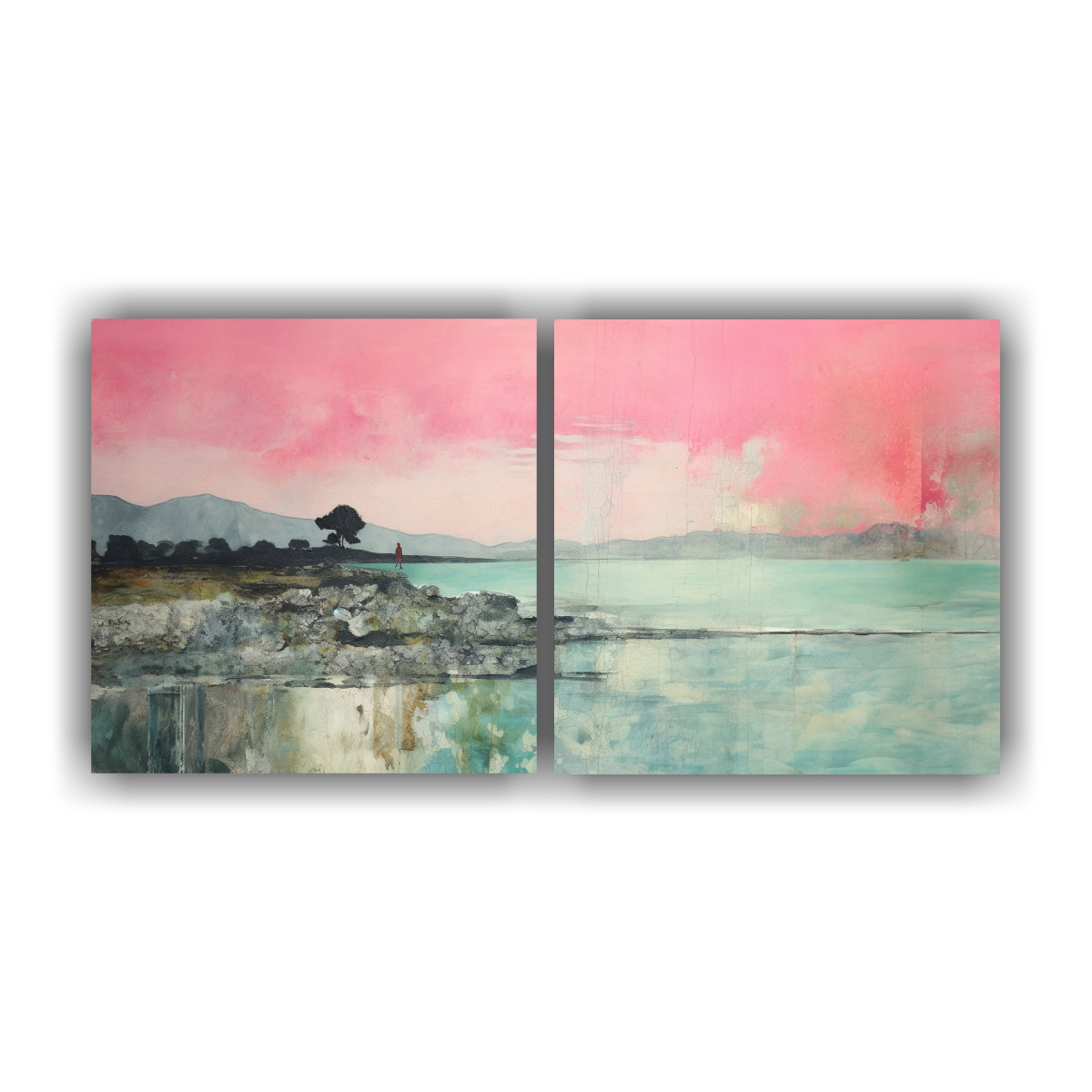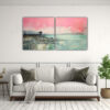 Pintura Abstracta Fantasía En Rosa, Turquesa Y Plata Lienzos Set 2