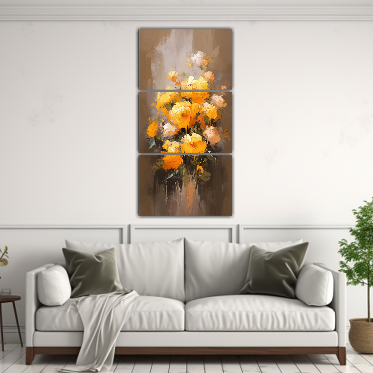 Coloca este set de cuadros en la pared principal de tu sala de estar para crear un impacto visual y darle vida al ambiente Combínalos con muebles en tonos neutros para resaltar la belleza de las flores amarillas y doradas ¡Dale a tu espacio un aire moderno y sofisticado!