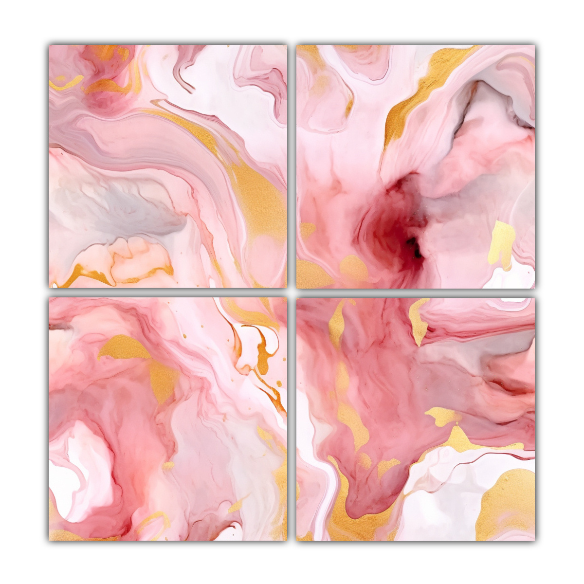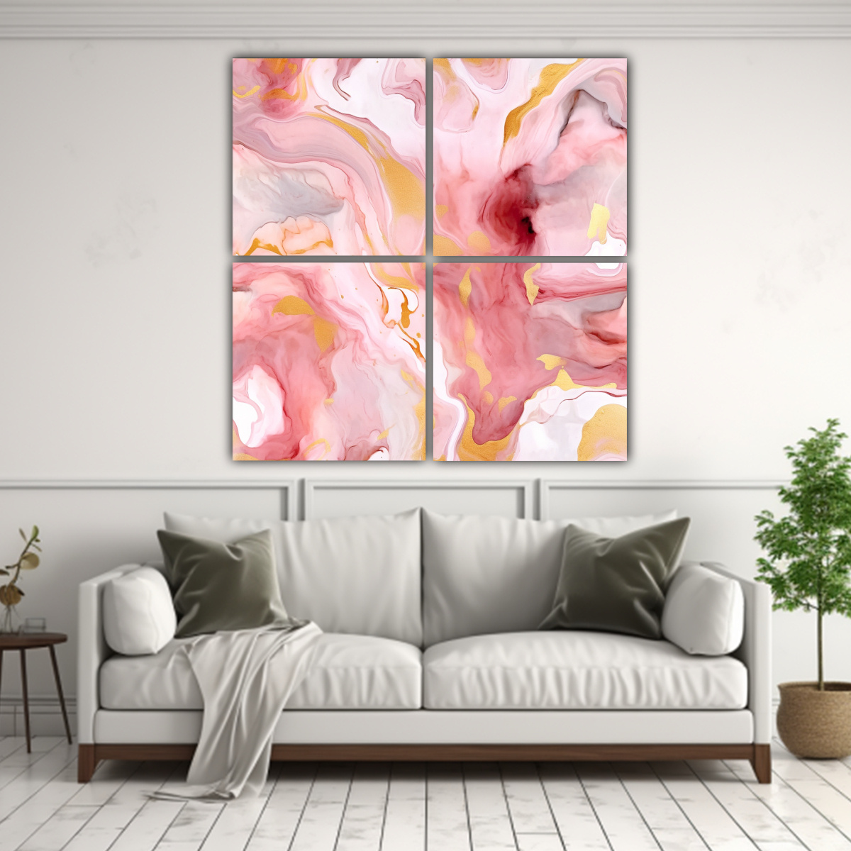 Este cuadro de pintura abstracta en alcohol en 4 lienzos se vería espectacular en una sala de estar moderna Colócalo sobre un sofá de color neutro para resaltar su diseño exclusivo y combínalo con cojines en tonos rosados y grises ¡Será el centro de atención de tu sala!