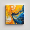 Pintura Abstracta Fluida En Tonos Cálidos Naranja Y Amarillo Con Toques Azules