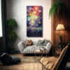 Este cuadro es ideal para decorar el salón o la sala de estar Colócalo sobre un mueble bajo o una repisa junto a otros elementos decorativos en tonos plateados, azules y dorados para crear una atmósfera elegante y sofisticada ¡Añade un toque de color a tus espacios con este cuadro vibrante!