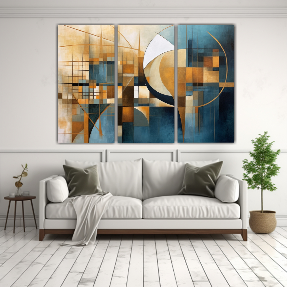 Pintura Abstracta Geométrica En Lienzo; Detallada Y Creativa.