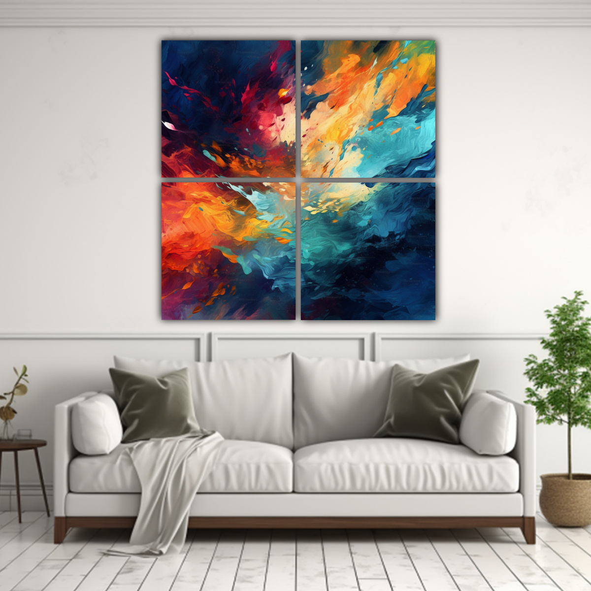 Este cuadro abstracto HD 8k en cuatro telas cálidos es ideal para decorar salas de estar, dormitorios o espacios de trabajo Puedes colocarlo en una pared blanca para crear un contraste elegante, o combinarlo con muebles de tonos neutros para lograr una decoración moderna Su paleta de colores cálidos le dará vida a cualquier ambiente