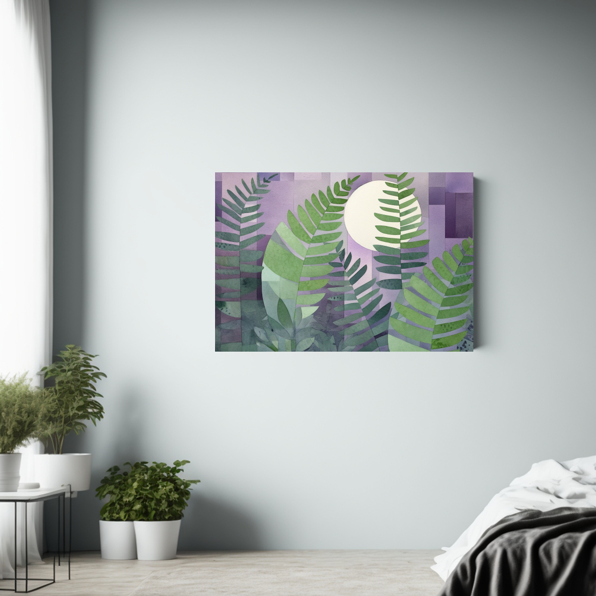 Imagina helechos sprigs abstractados en formas geométricas que dan vida a una pieza única Aporta un toque moderno y sofisticado a tu hogar con este cuadro decorativo Dale un aire fresco a tu espacio combinándolo en tu sala de estar o dormitorio